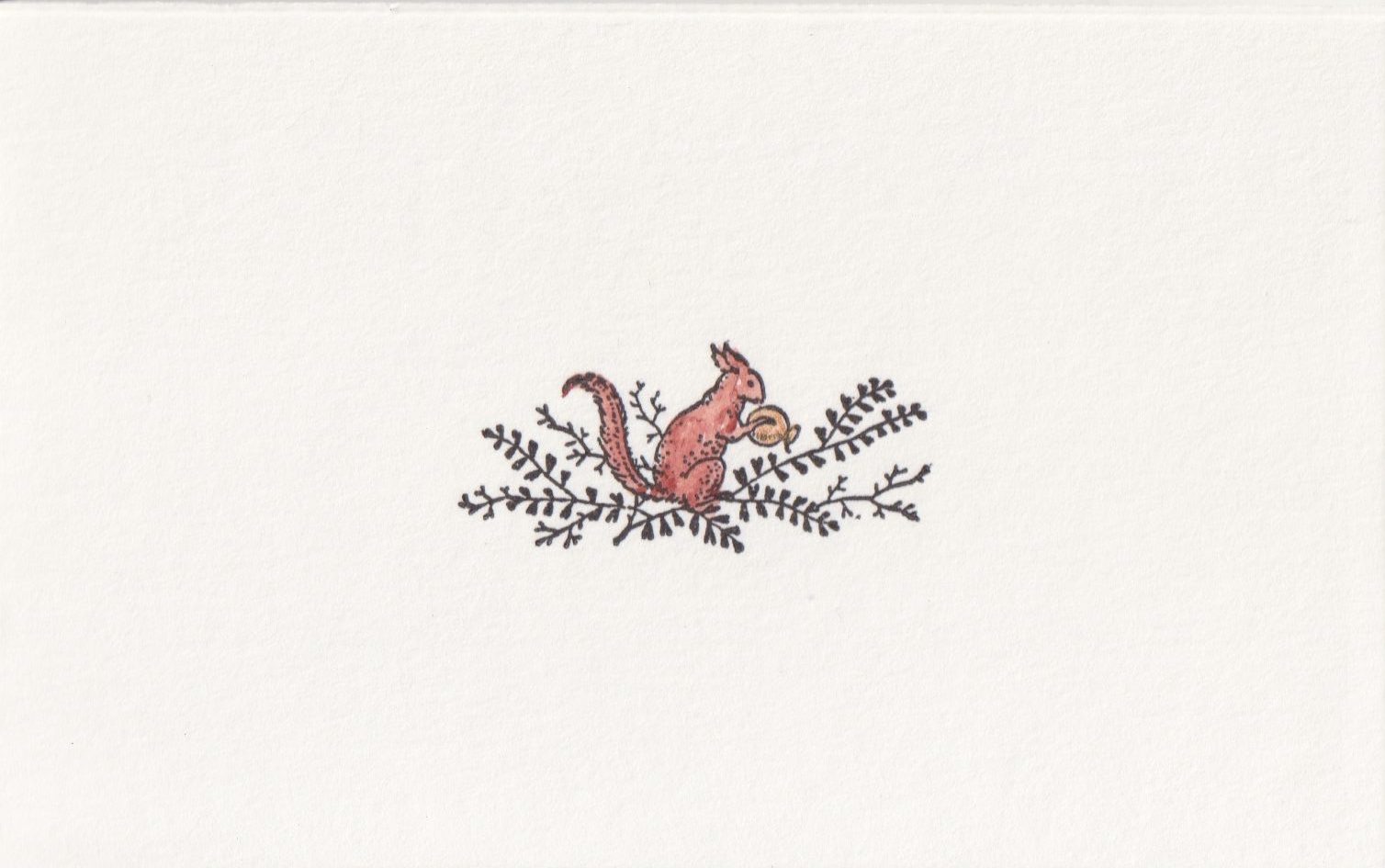 Kleine Klappkarte aus niederländischem Feinstpapier im Format 9 x 14 cm, handkoloriert, mit Kuvert.
